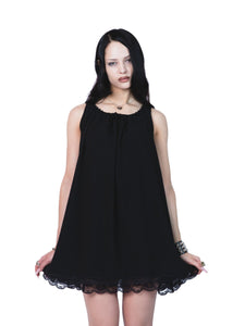 Classic babydoll silhouette with a free waist and hip measurement. Model is wearing XS/S