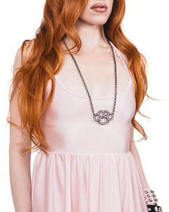 • 2.25 inch rhinestone encrusted brass knuckle charm